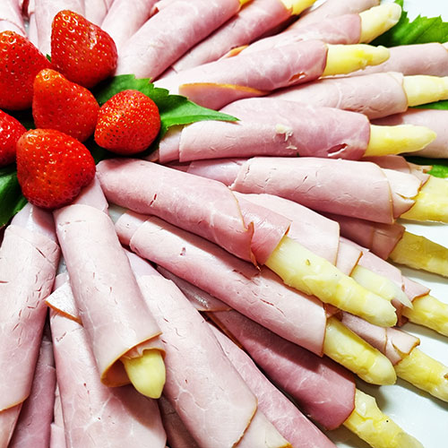 - zartes Kalbfleisch, umwickelt mit feinem Parmaschinken,