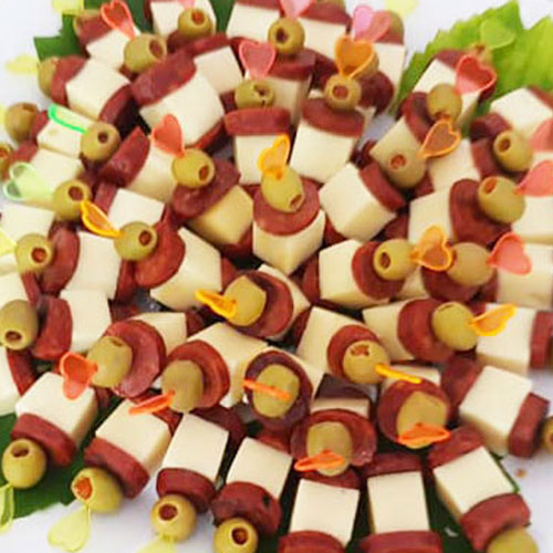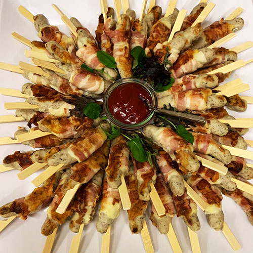 Nürnberger-Bratwurst-Käse-Bacon Spießchen