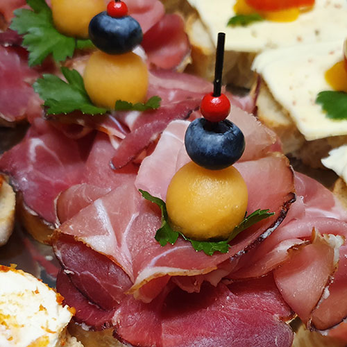 - zartes Kalbfleisch, umwickelt mit feinem Parmaschinken,