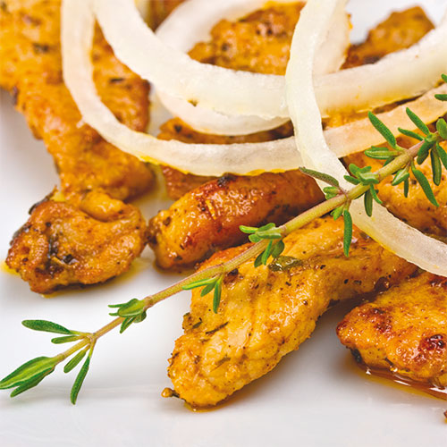 Gyros vom Schwein oder Geflügel, mit Zwiebeln gebraten und unserer beliebten BERGMANN`s Gewürzmischung